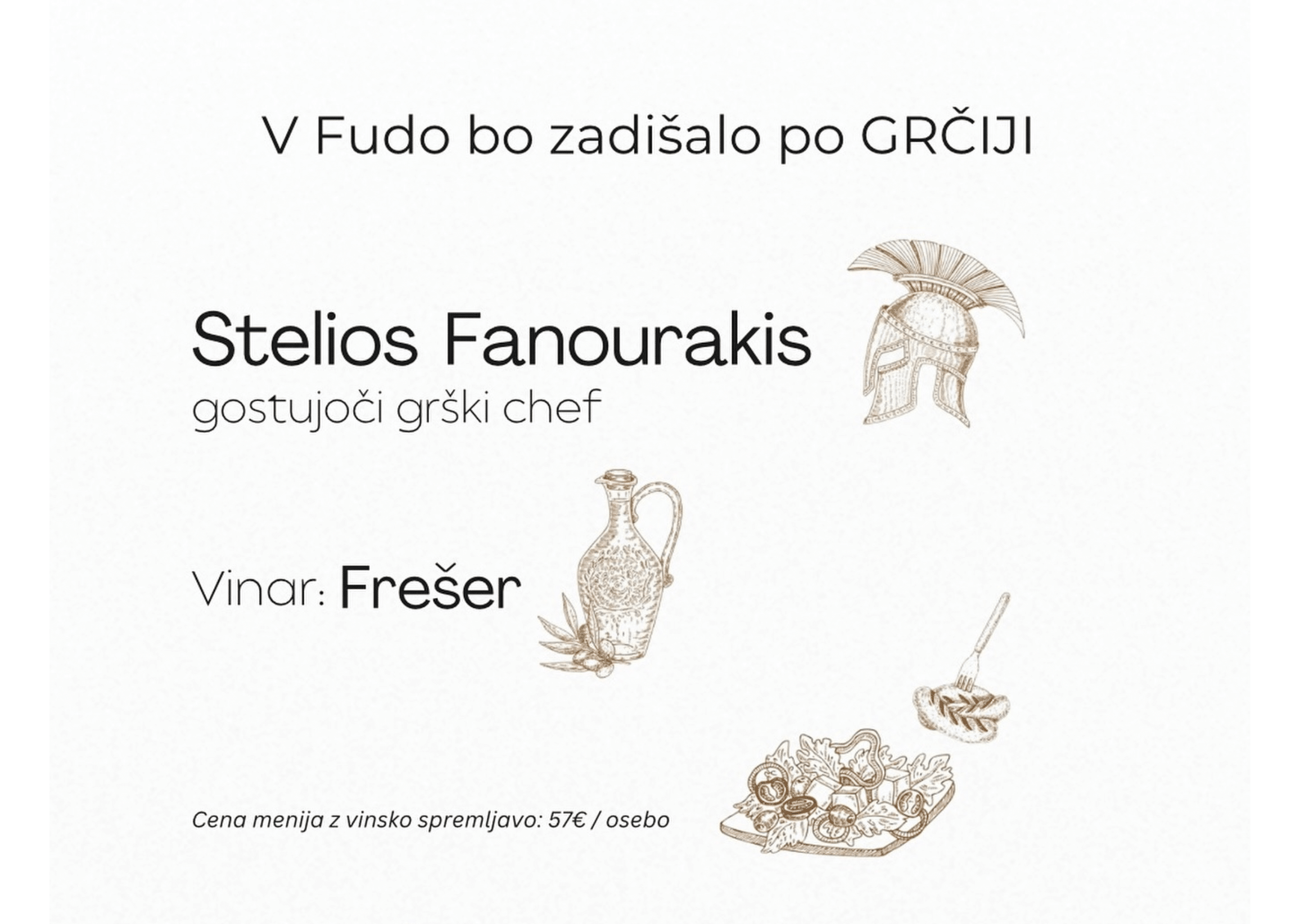 Pridružite se nam na nepozabnem večeru grške kulinarike, kjer bo gostujoči grški chef Stelios Fanourakis v sodelovanju s Srednjo gostinsko šolo in Višjo strokovno šolo za gostinstvo in turizem pripravil edinstveno kulinarično doživetje.