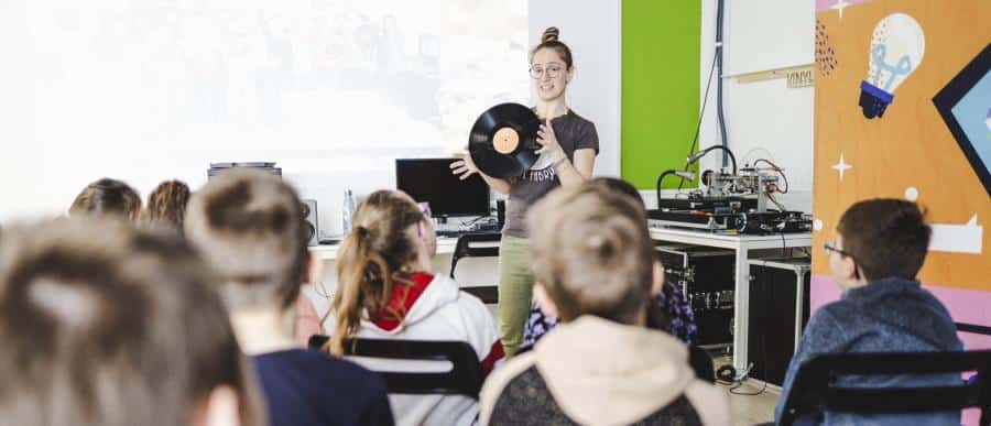 V Kulturnem inkubatorju bodo otroci na delavnici »Risanje zvoka« spoznali način ustvarjanja vinilnih plošč v VINYL FABRIKI, izvedli nekaj zvočnih eksperimentov in zapeli pesem ali celo kaj zaigrali. Njihova glasba se bo v živo zapisovala na gramofonsko ploščo, ki jo bodo odnesli s seboj v šolo.